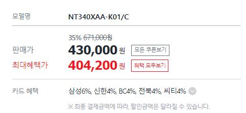 삼성 북3 NT340XAA-K01 할인 정보 포스팅입니다.