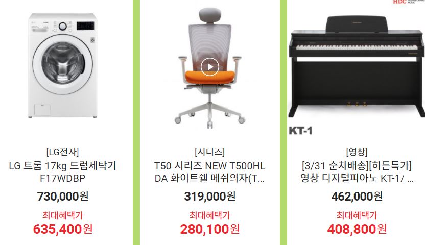 할인 품목 : 노트북, 냉장고, CPU 등