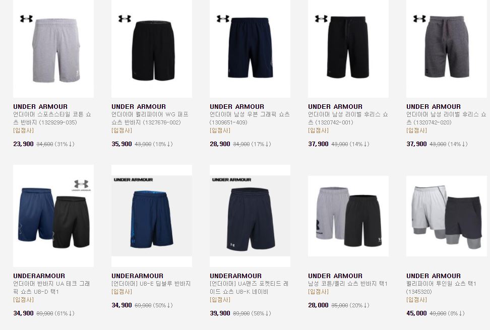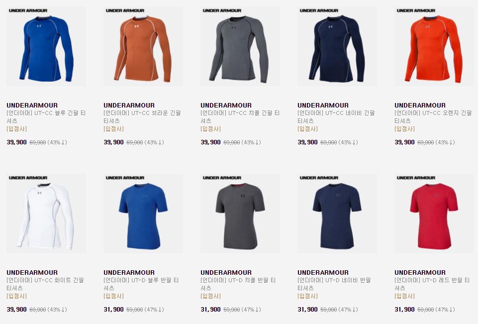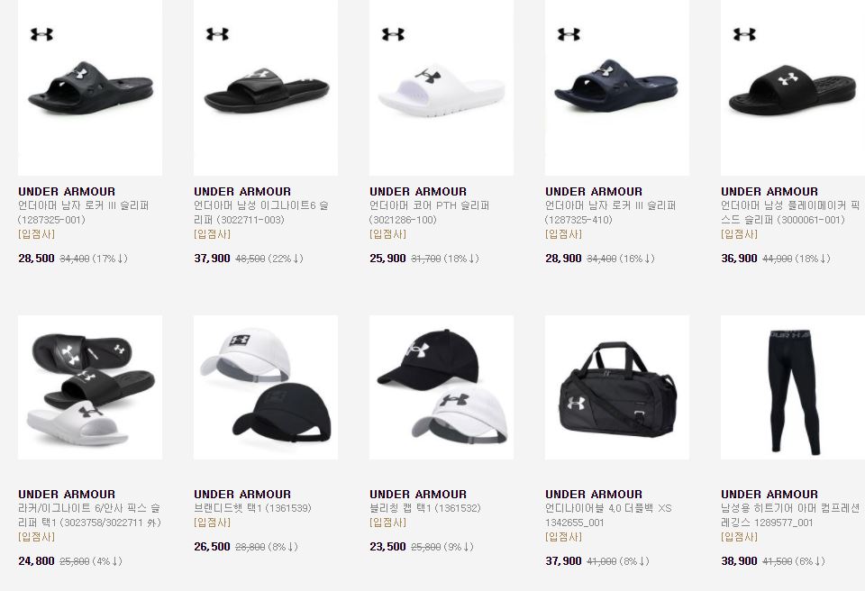 언더아머 다양한 제품을 할인 판매하네요.