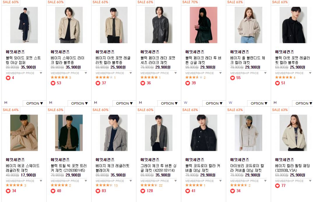 에잇세컨즈 다양한 제품을 할인 판매하네요.