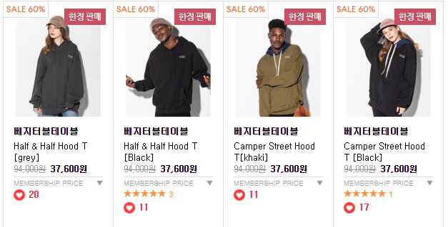 할인 품목 : 모자, 후드티, 가방 등