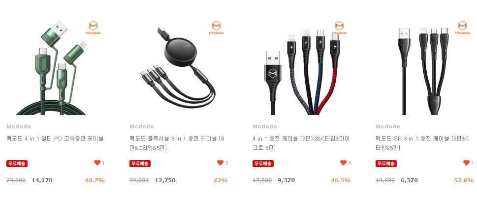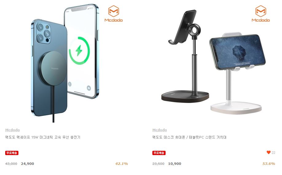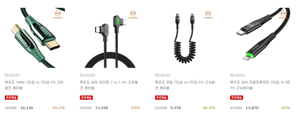 할인 품목 : 무선충전기, 충전케이블, 보조배터리 등