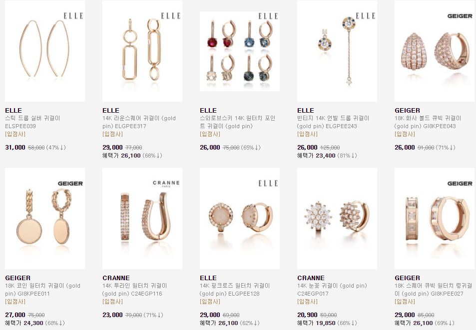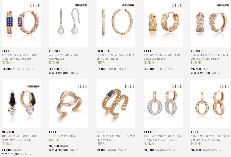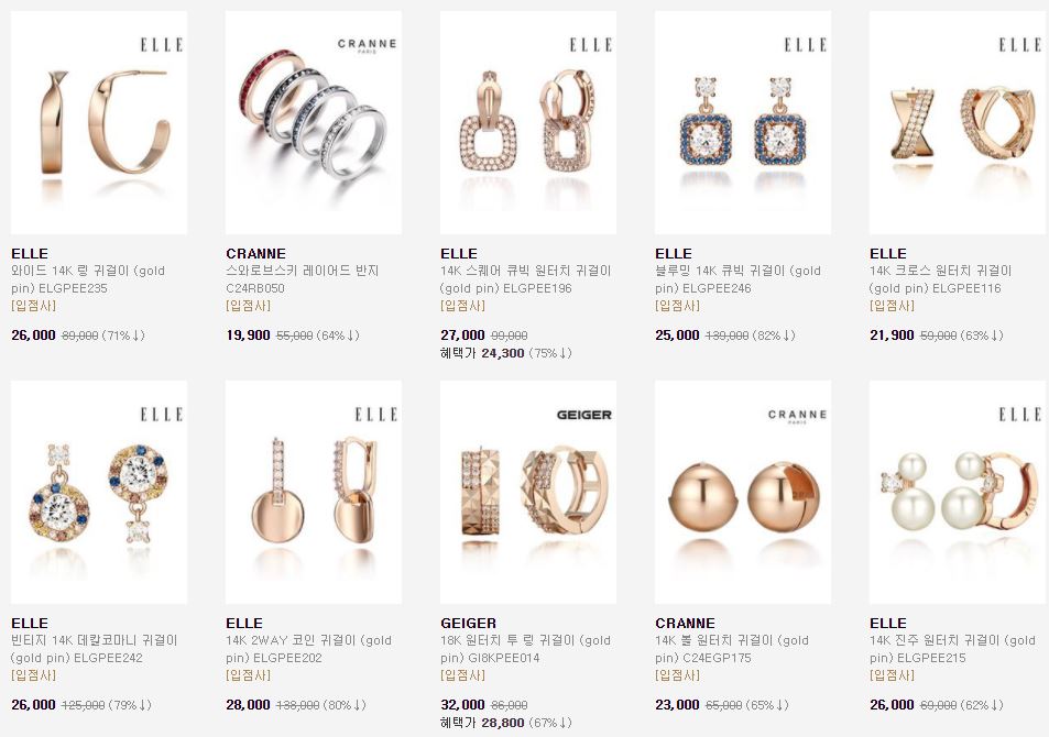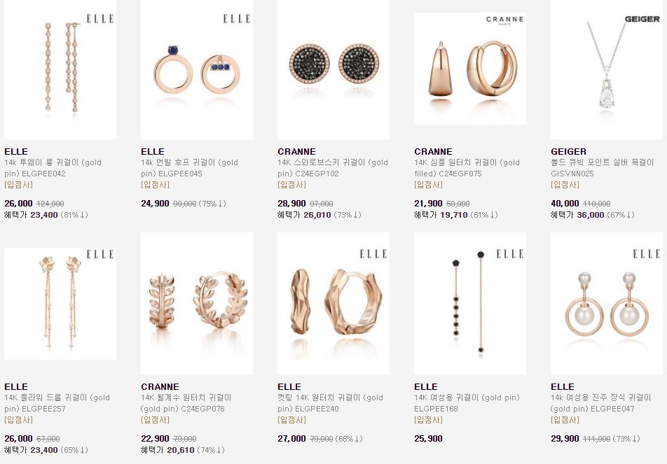 할인 품목 : 귀걸이, 반지, 목걸이 등