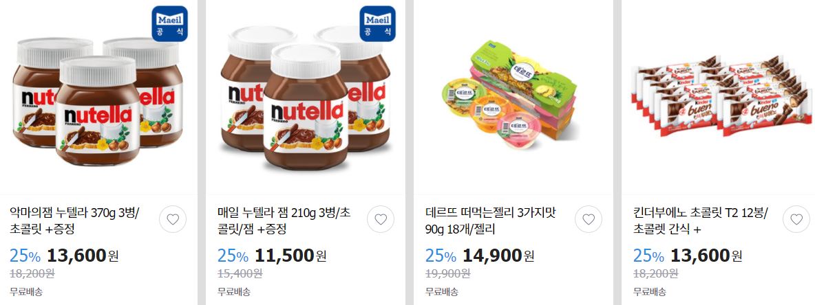 할인 품목 : 초콜릿, 우유, 누텔라 잼 등
