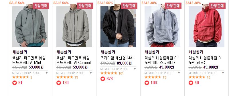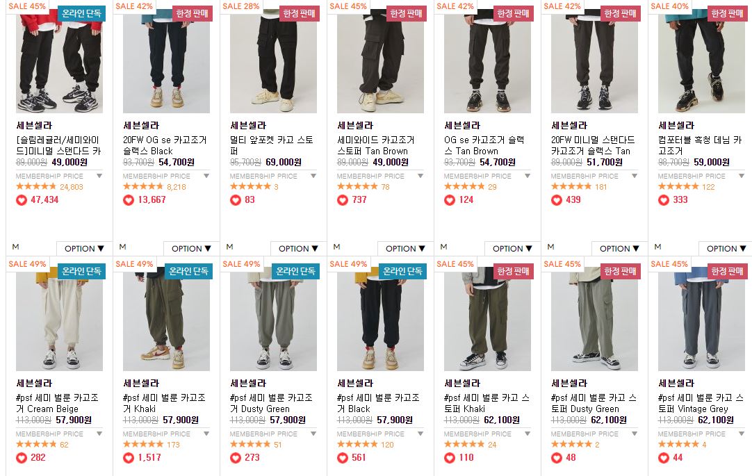 할인 품목 : 팬츠, 셔츠, 자켓 등