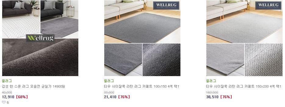 할인 품목 : 가방, 가구, 러그 등