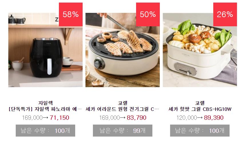 할인 품목 : 청소기, 에어프라이어, 드라이기 등