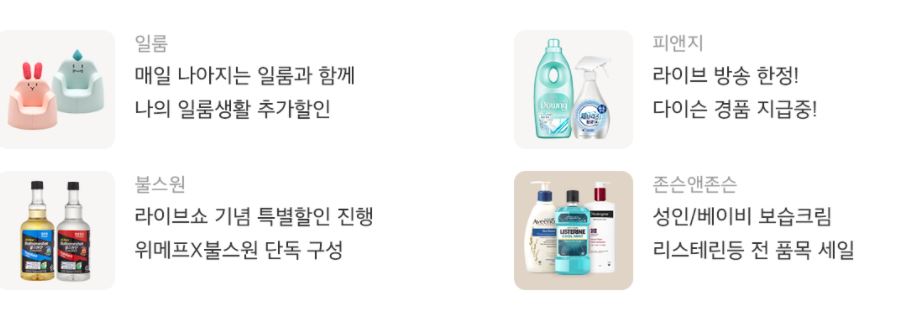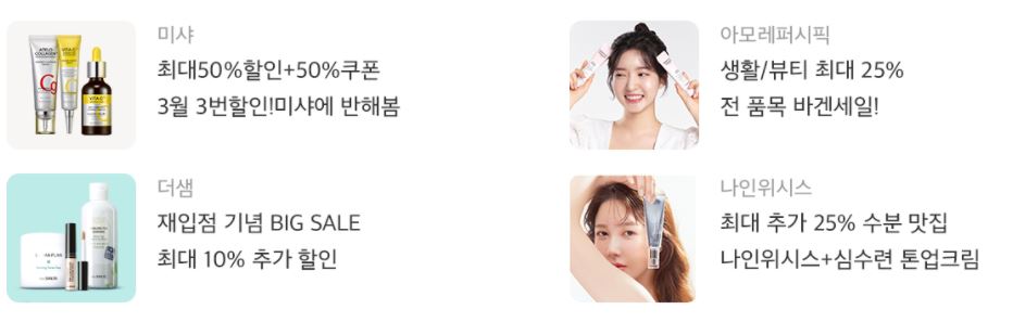 할인 품목 : 가전, 식품, 화장품 등