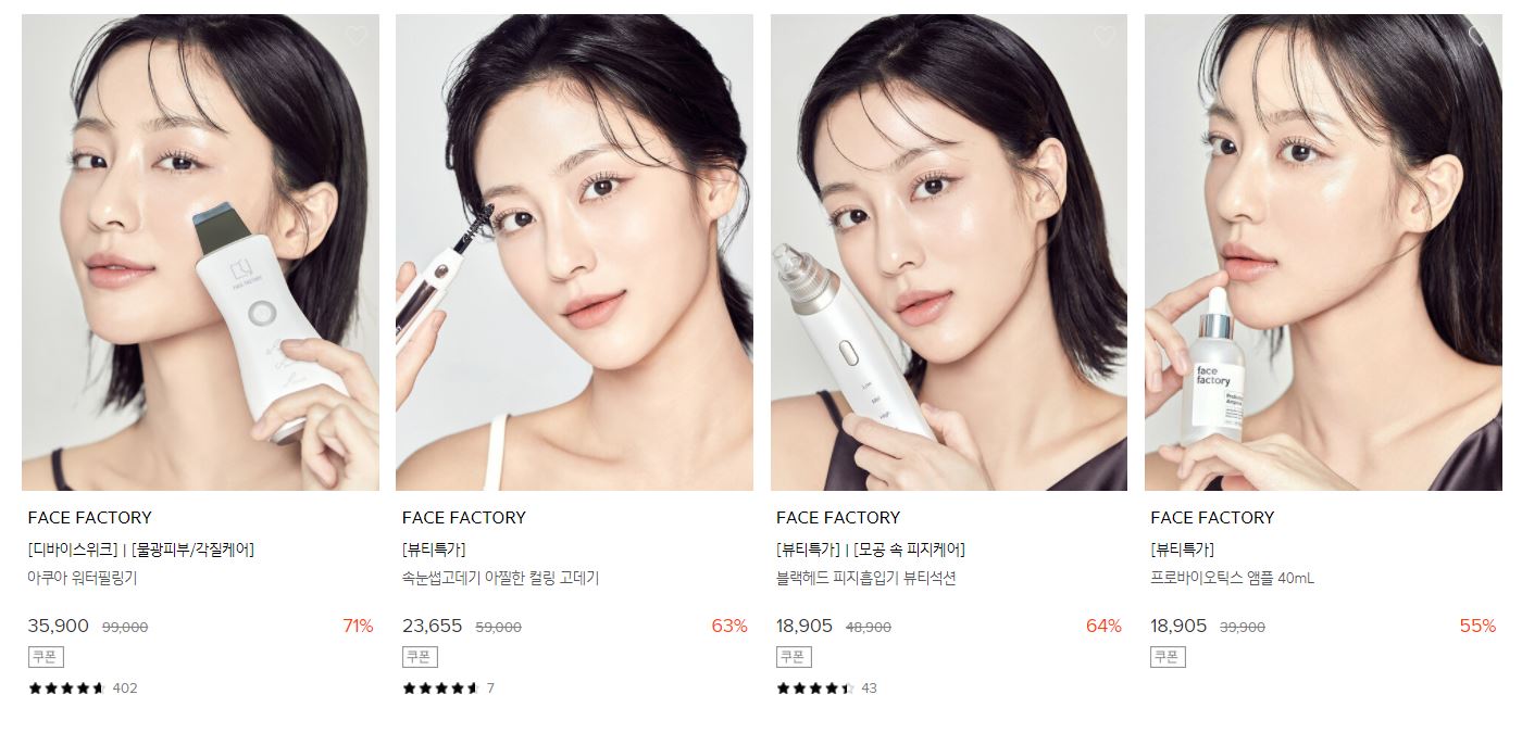 페이스팩토리 다양한 제품을 할인 판매하네요.