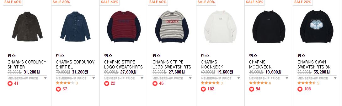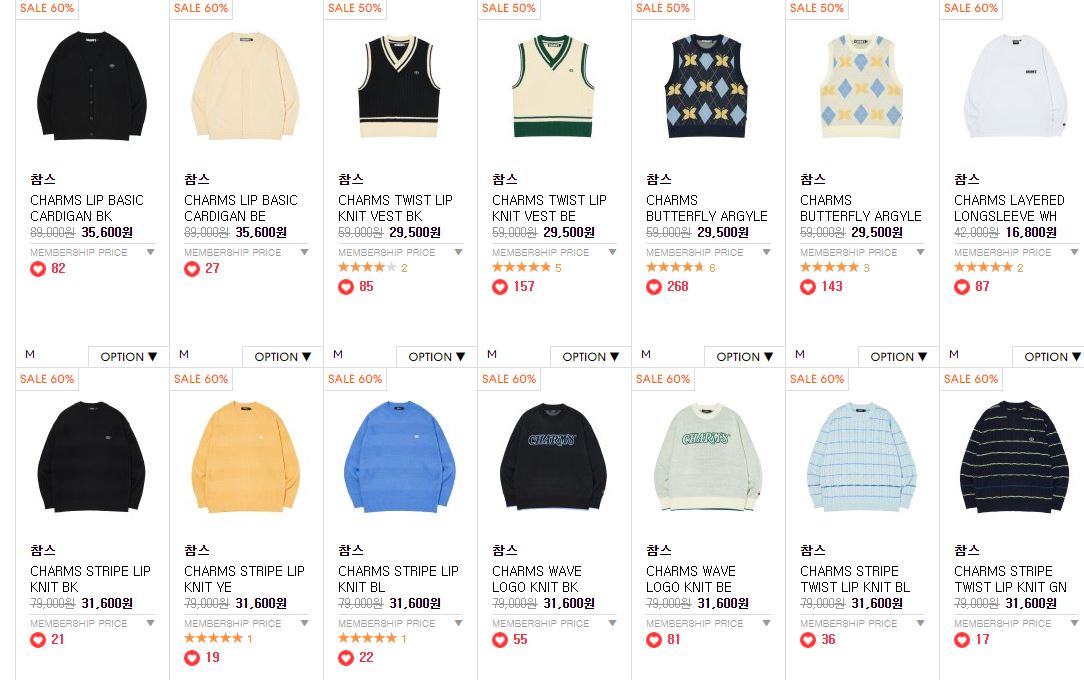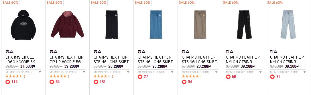 할인 품목 : 니트, 팬츠, 후드티 등