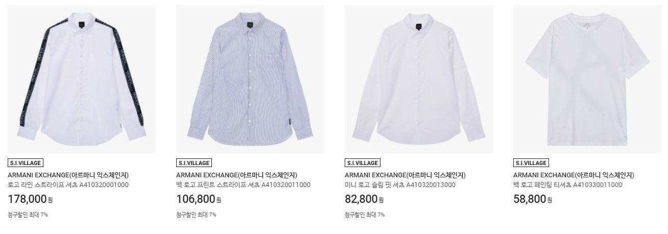 아르마니 익스체인지 다양한 제품을 할인 판매하네요.