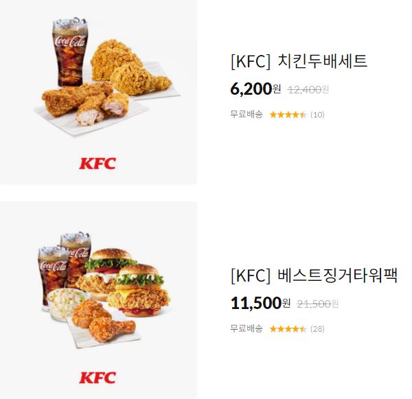할인 메뉴 : 치킨두배세트, 징거앤치르르세트 등