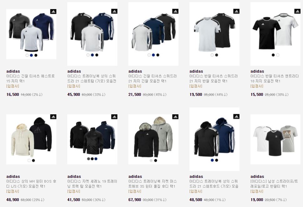 아디다스 다양한 제품을 할인 판매하네요.
