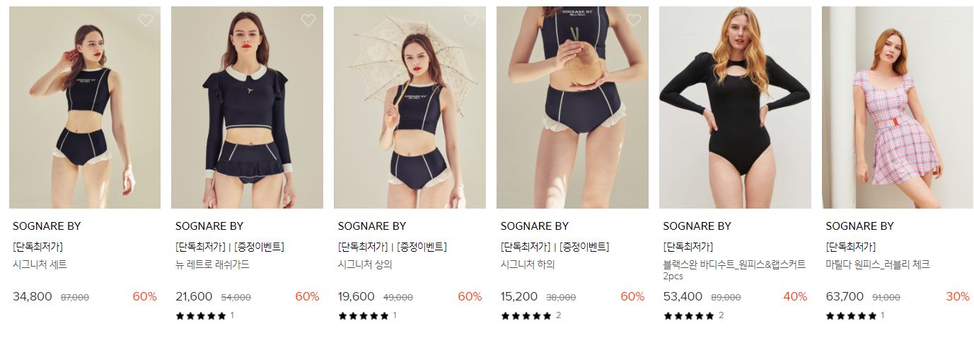 할인 품목 : 레깅스, 속옷, 래쉬가드 등