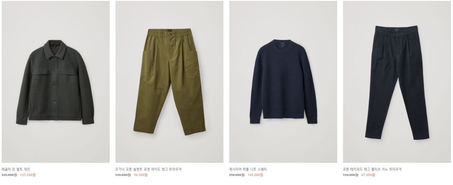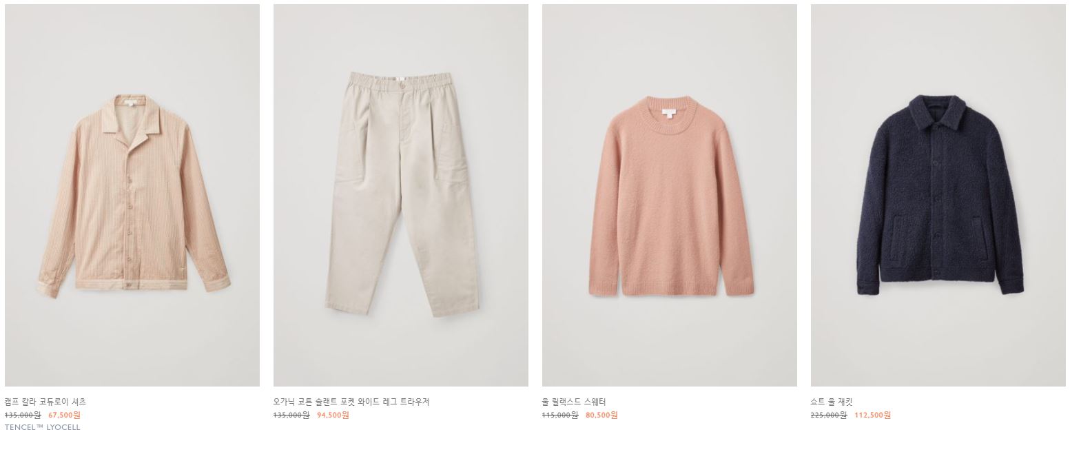 할인 품목 : 자켓, 티셔츠, 팬츠, 원피스 등