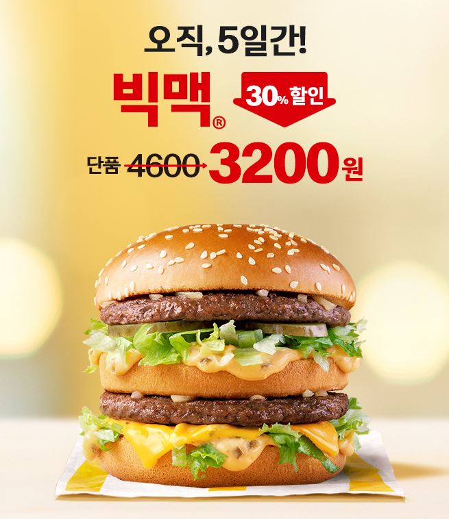 맥도날드 빅맥 30% 할인 정보 포스팅입니다.