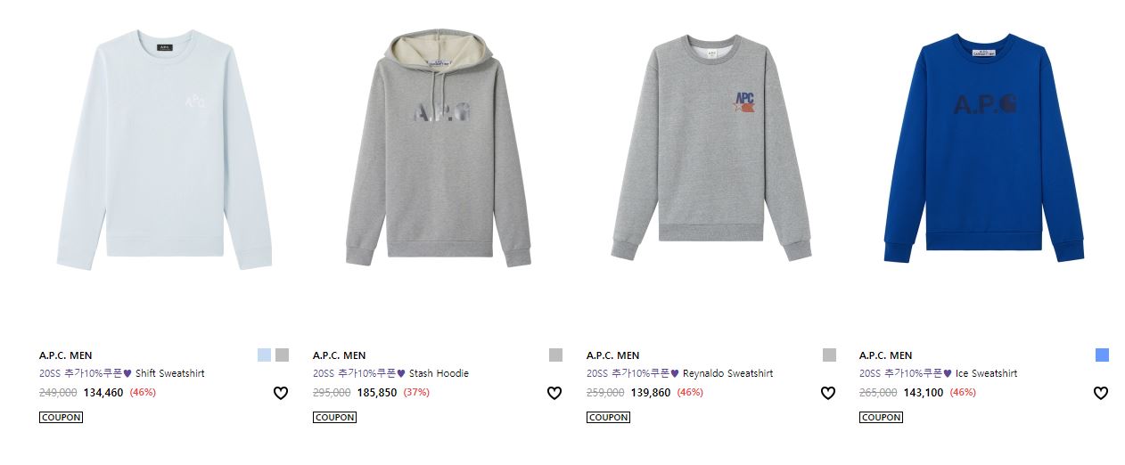 할인 품목 : 티셔츠, 자켓, 팬츠 등