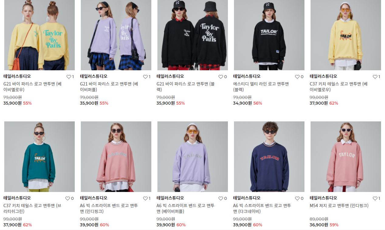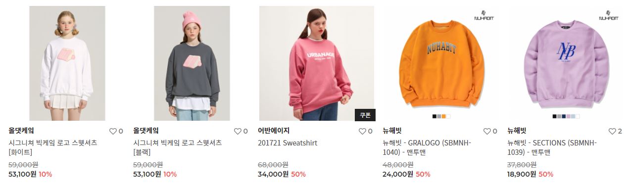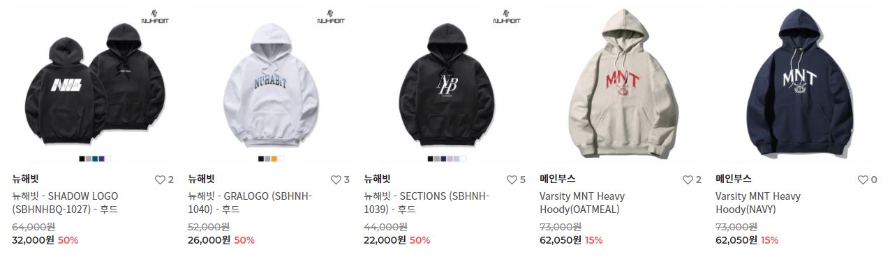 할인 품목 : 맨투맨, 후드티, 팬츠 등
