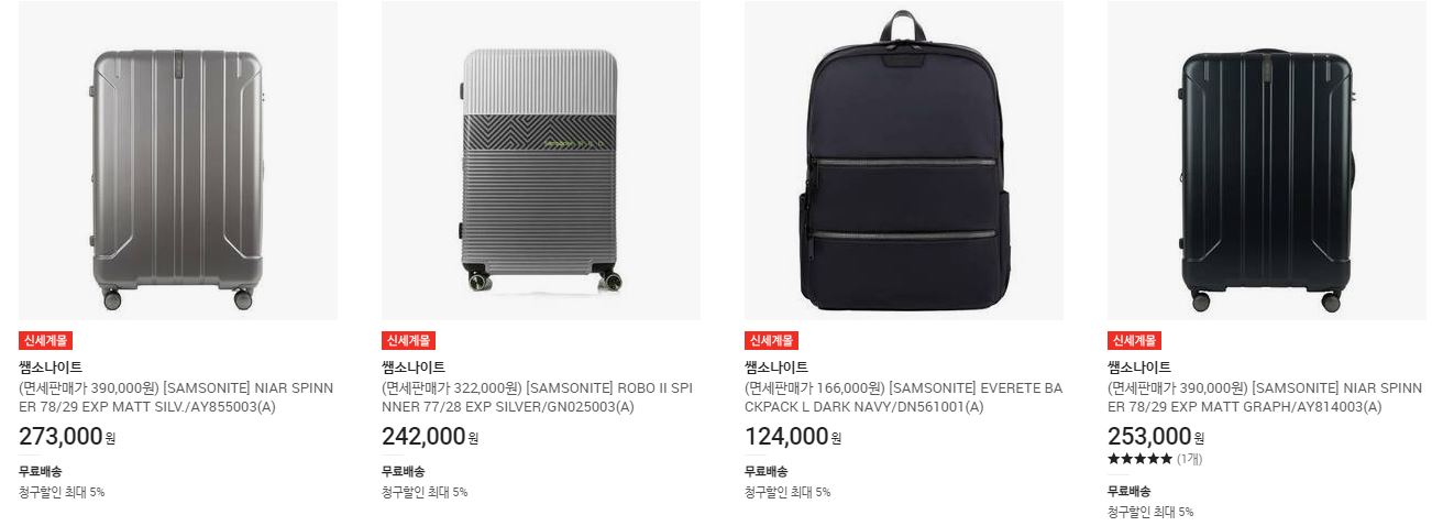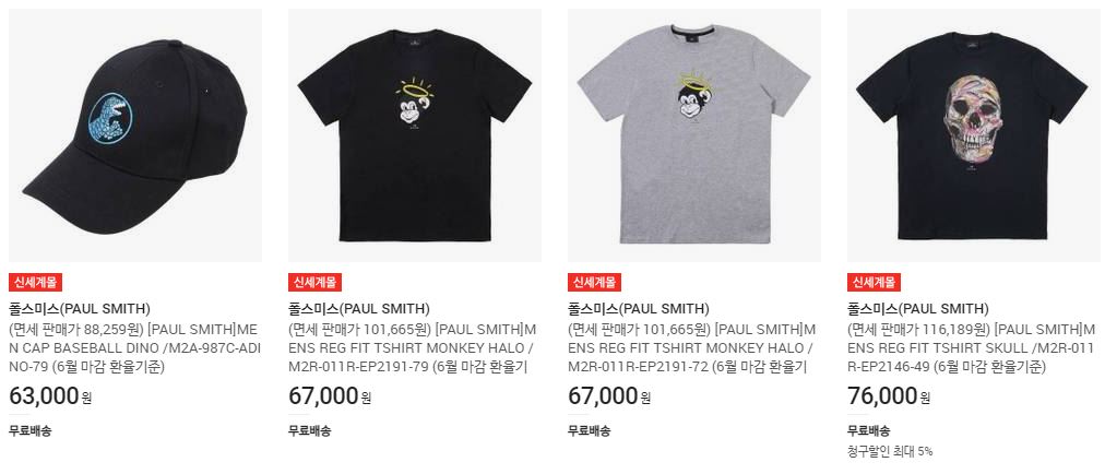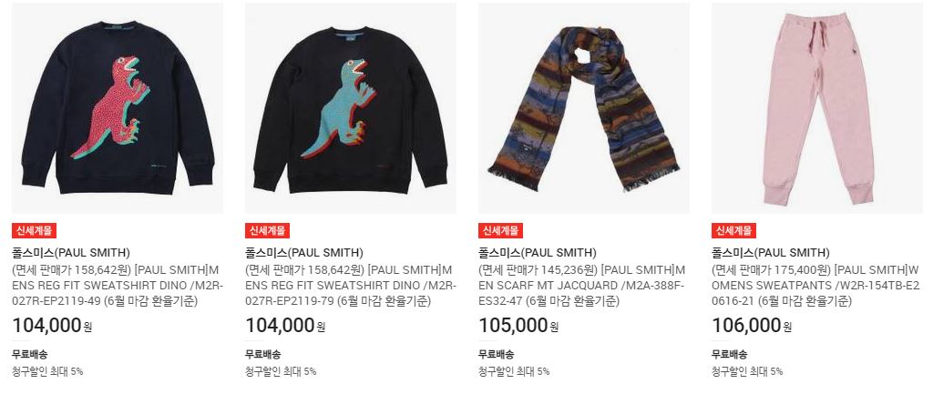 할인 품목 : 의류, 선글라스, 가방, 신발 등
