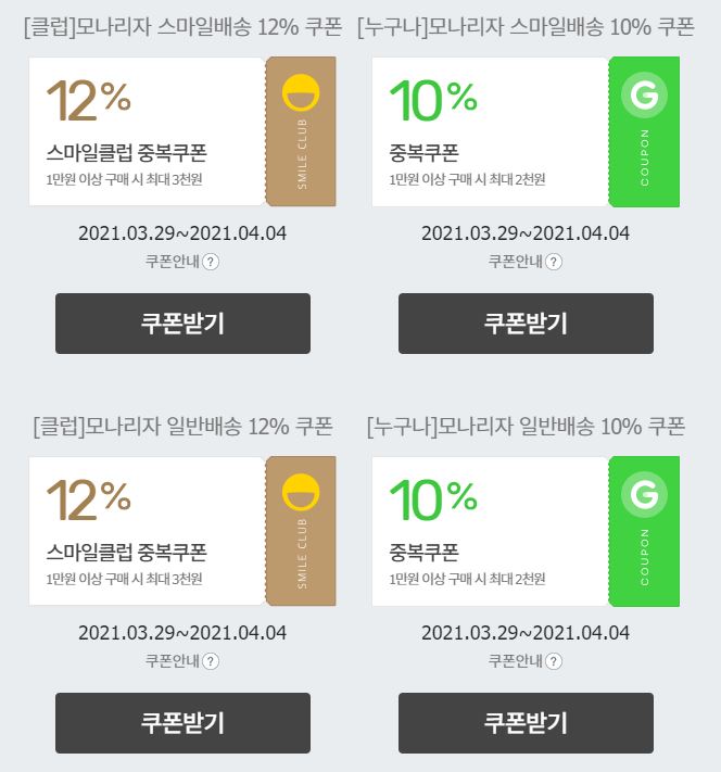 모나리자 클리어런스 세일 + 최대 30% 중복쿠폰 정보 [링크]