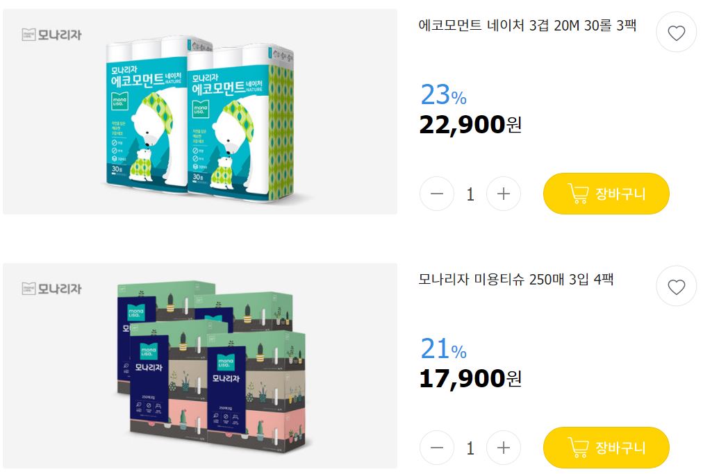 모나리자 다양한 제품을 할인 판매하네요.