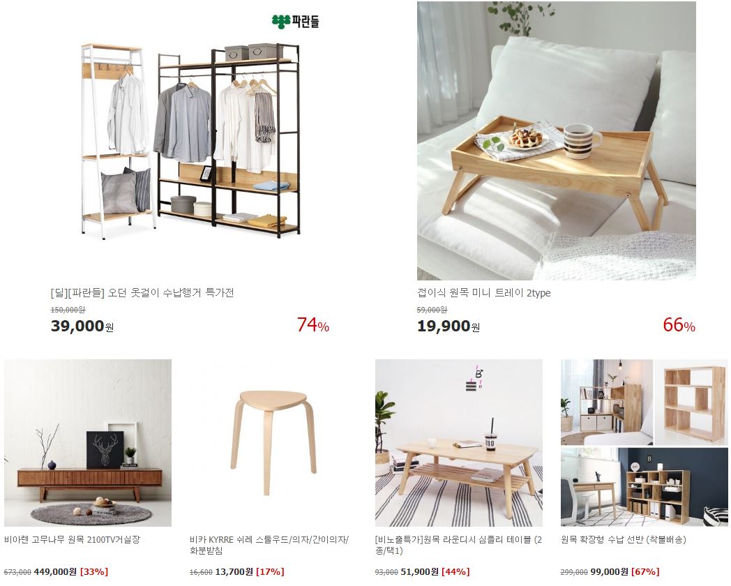 할인 품목 : 수납장, 침대, 선반, 테이블 등