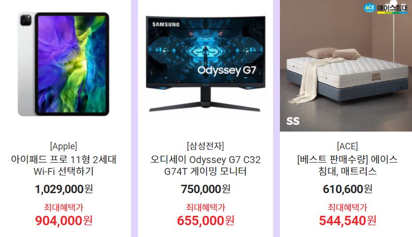 할인 품목 : 휴대폰, 모니터, 에어컨, 노트북 등