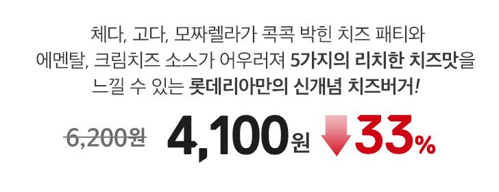 롯데리아 치즈No.5 세트 33% 할인 정보 포스팅입니다.