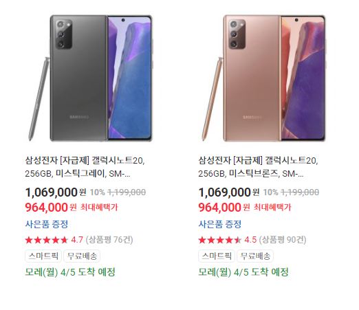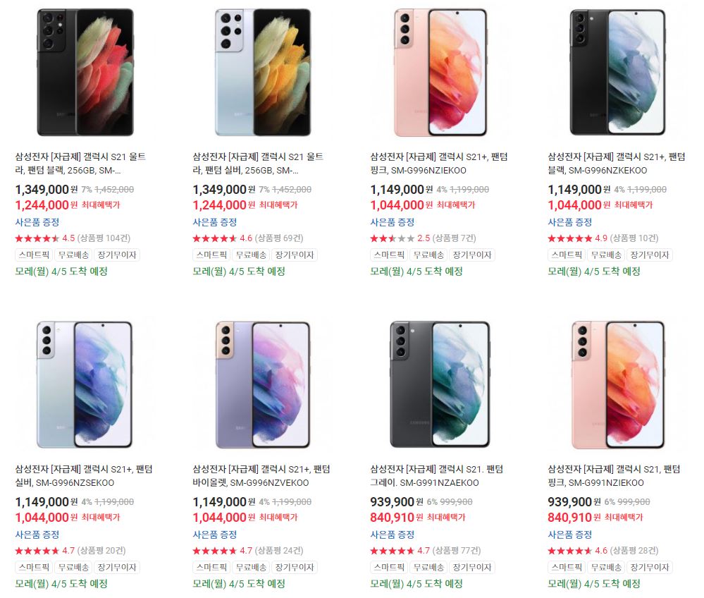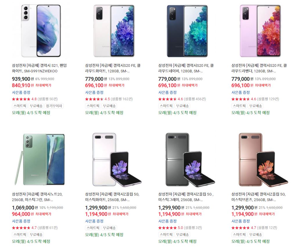 할인 품목 : 갤럭시 S21 울트라, 갤럭시노트 20 등