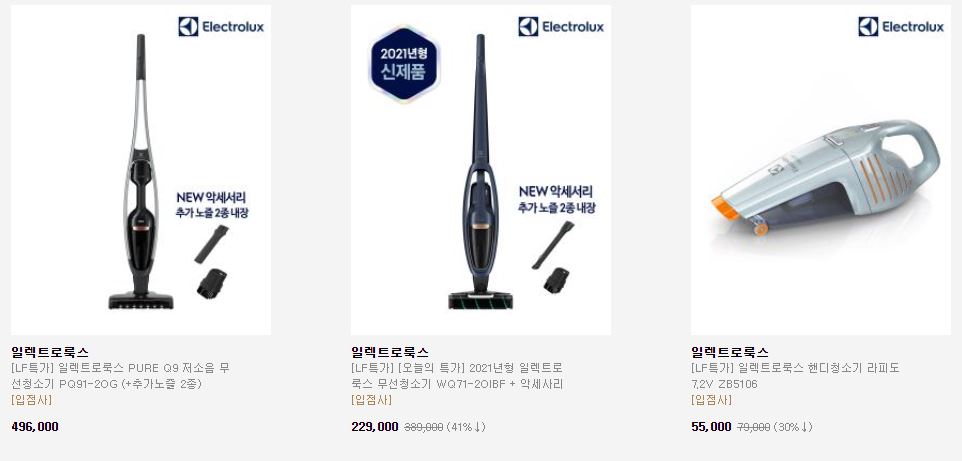 일렉트로룩스 다양한 제품을 할인 판매하네요.