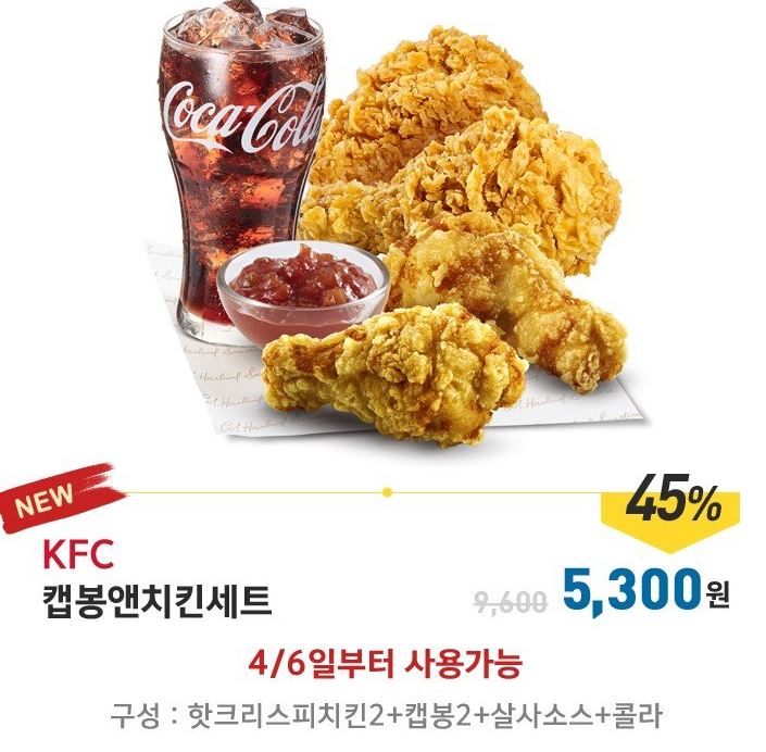 할인 메뉴 : 징거텐더세트, 캡봉앤치킨세트 등