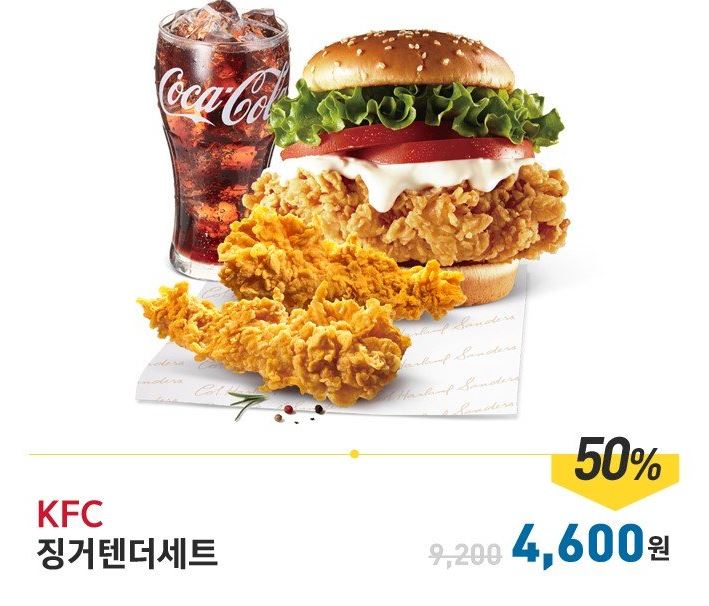 할인 메뉴 : 징거텐더세트, 캡봉앤치킨세트 등