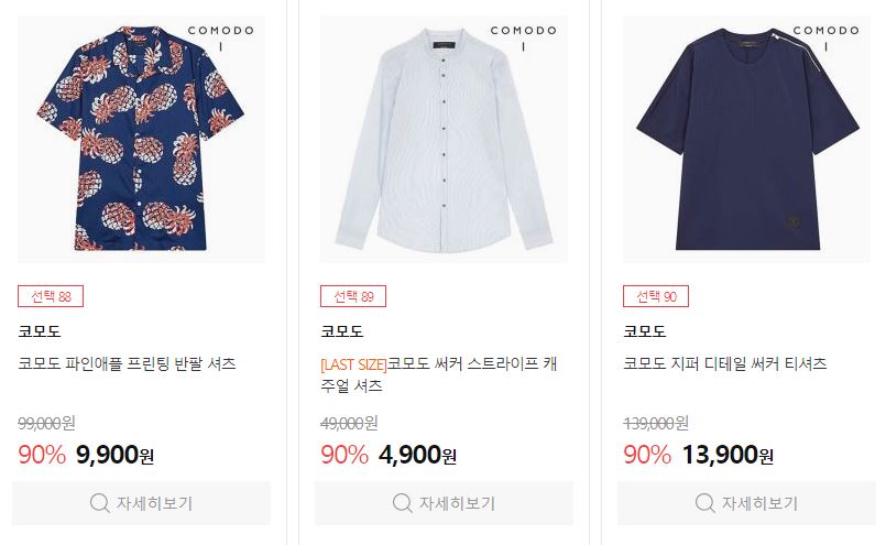 코모도 다양한 제품을 할인 판매하네요.