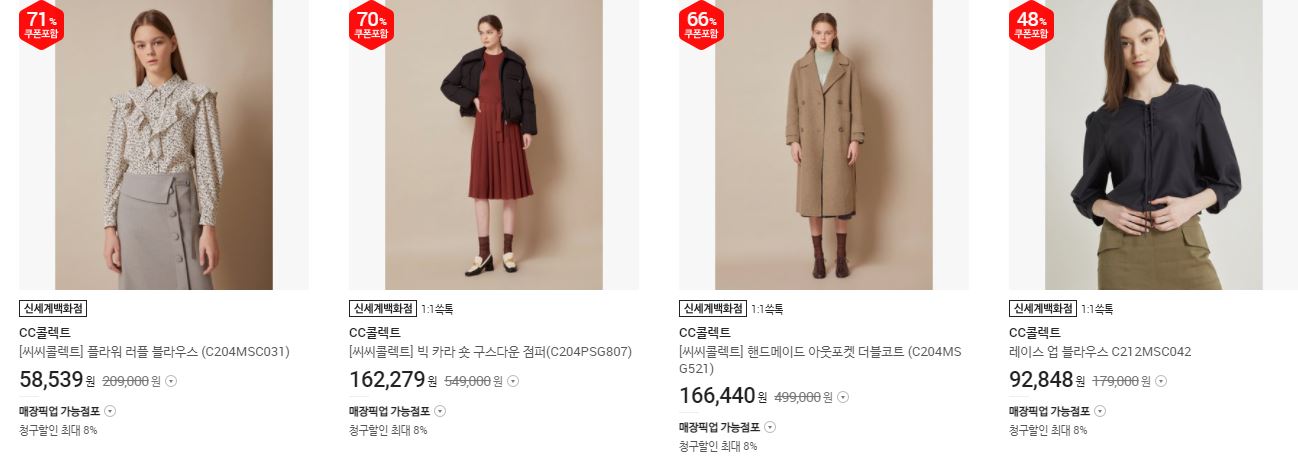 할인 품목 : 코트, 니트, 원피스 등