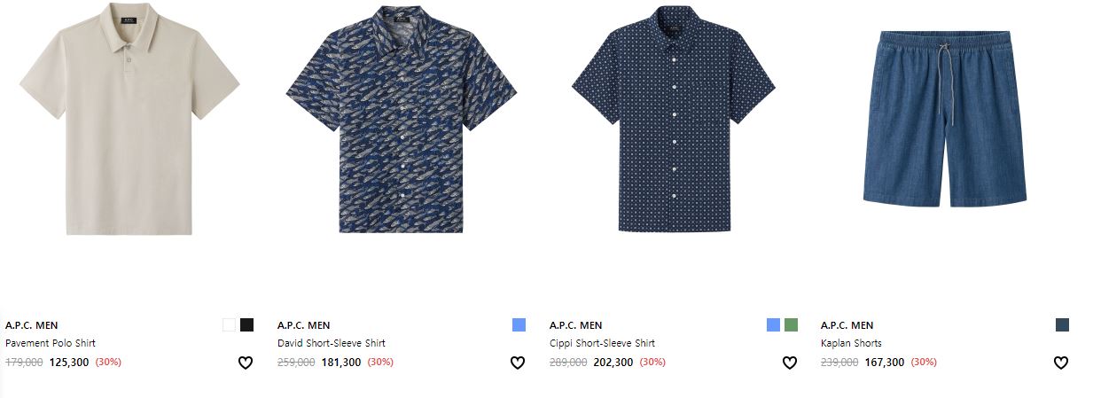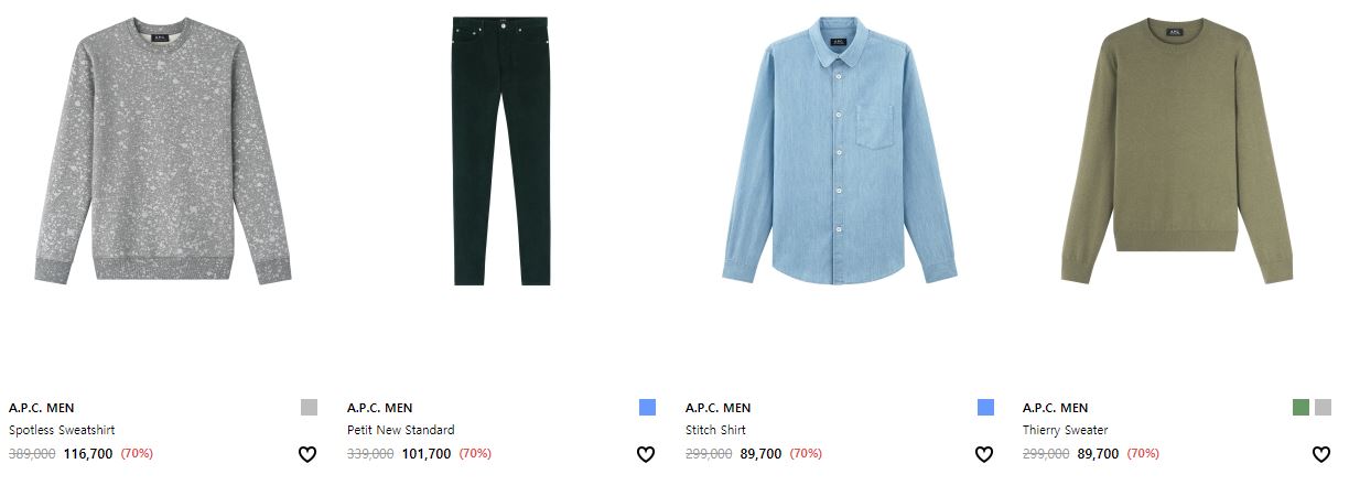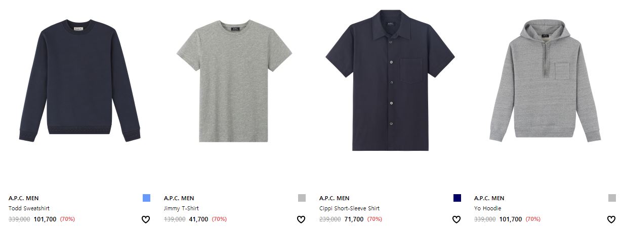 A.P.C. 다양한 제품을 할인 판매하네요.