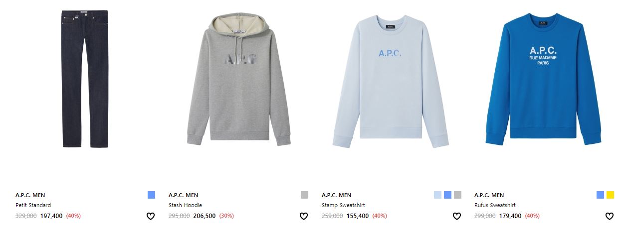 A.P.C. 다양한 제품을 할인 판매하네요.