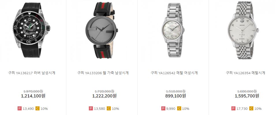 할인 브랜드 : 구찌, 태그호이어, 프레드릭 콘스탄트