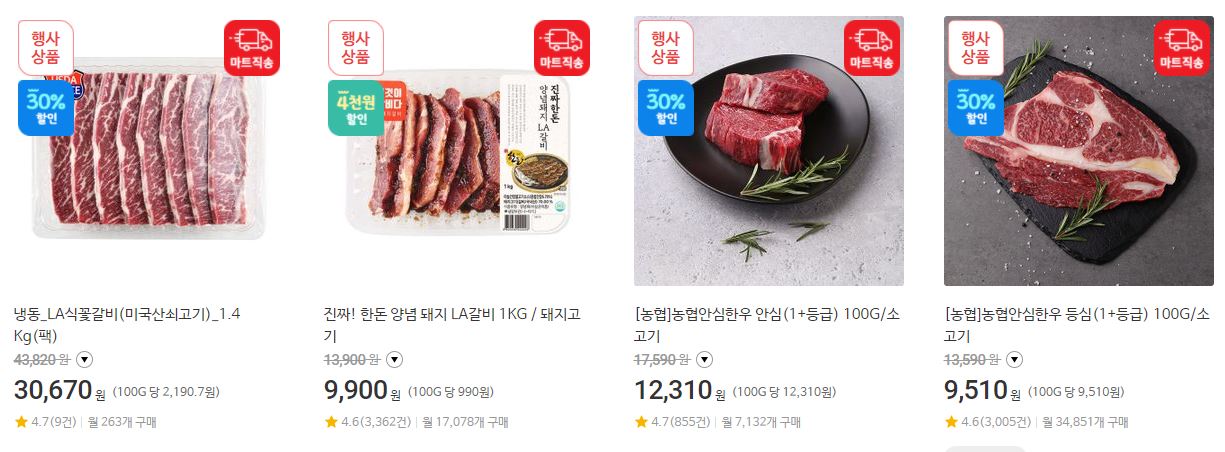 할인 품목 : 육류, 하리보, 오징어 등