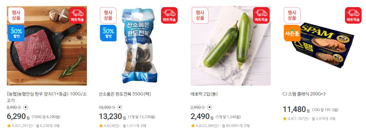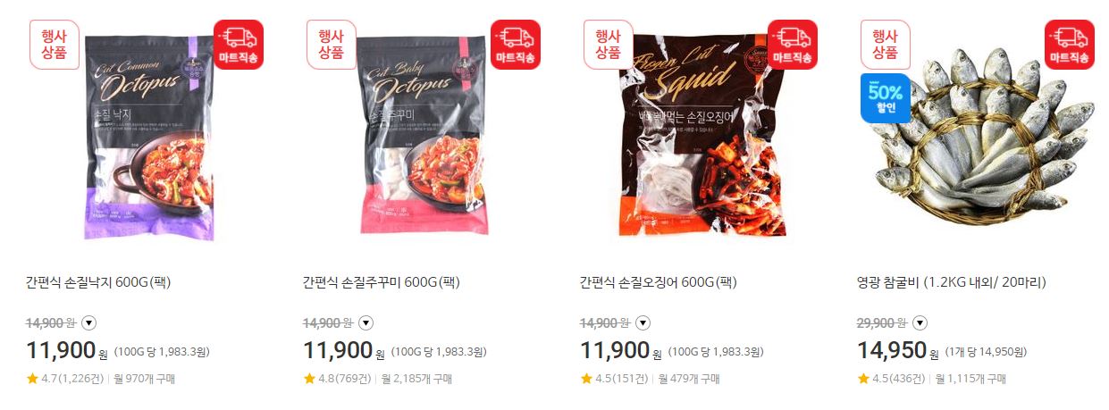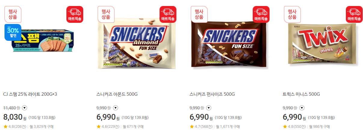 할인 품목 : 육류, 하리보, 오징어 등