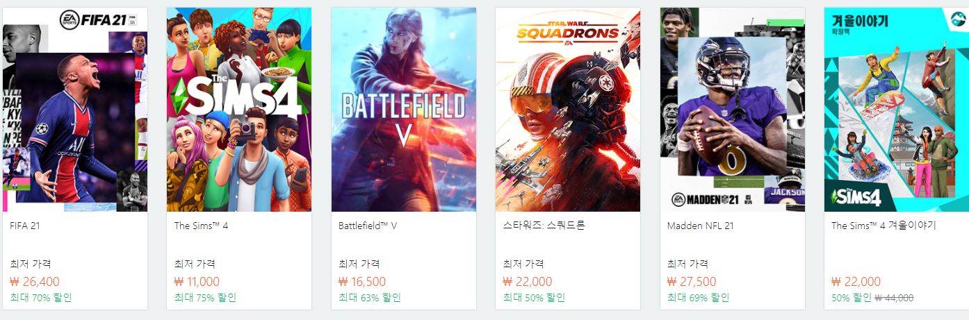 할인 게임 : 피파21, 배틀필드5, 스타워즈 스쿼드론 등