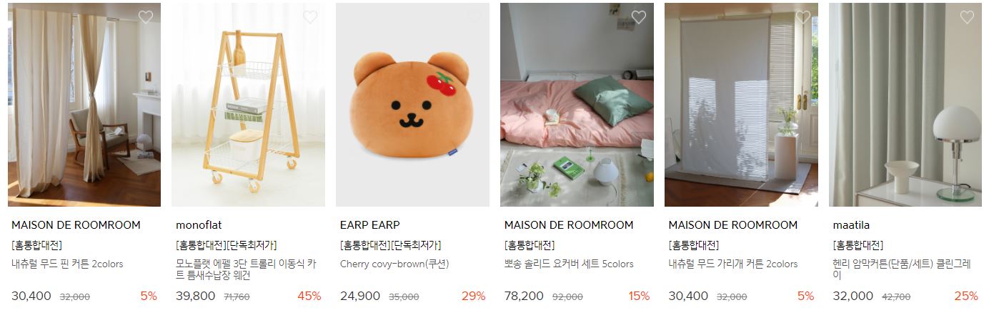 할인 품목 : 커튼, 이불, 행거 등