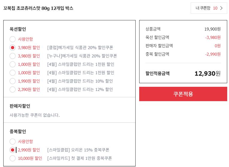 정가 19900원 / 최대 할인가 12930원