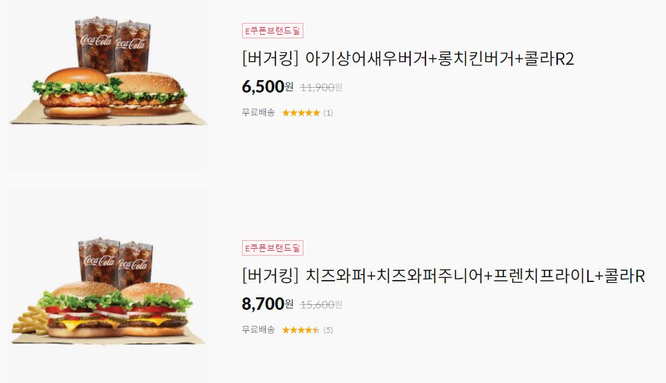 할인 브랜드 : 버거킹, 파리바게뜨, 이디야커피 등