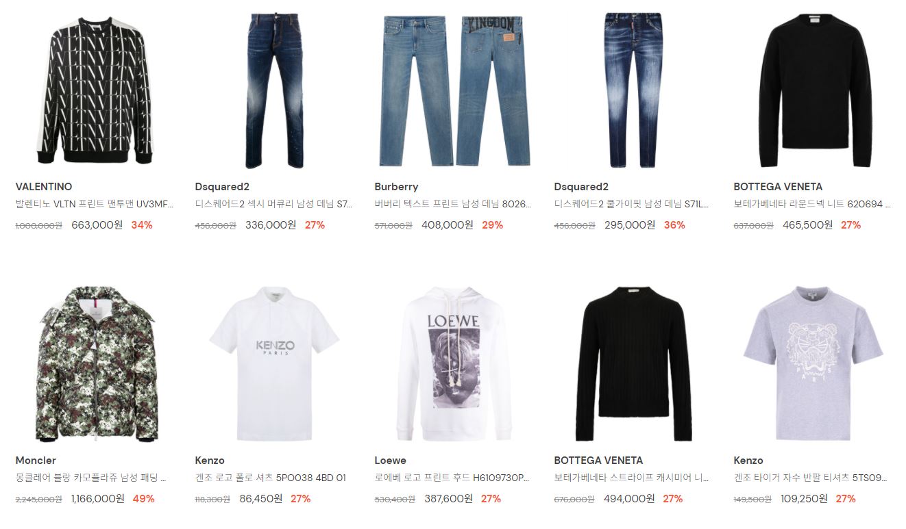 할인 품목 : 티셔츠, 팬츠, 신발, 가방 등