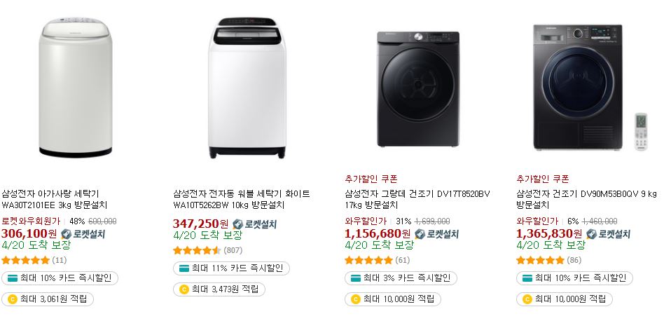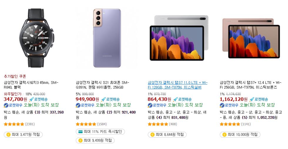 할인 품목 : 휴대폰, 스마트밴드, 냉장고 등