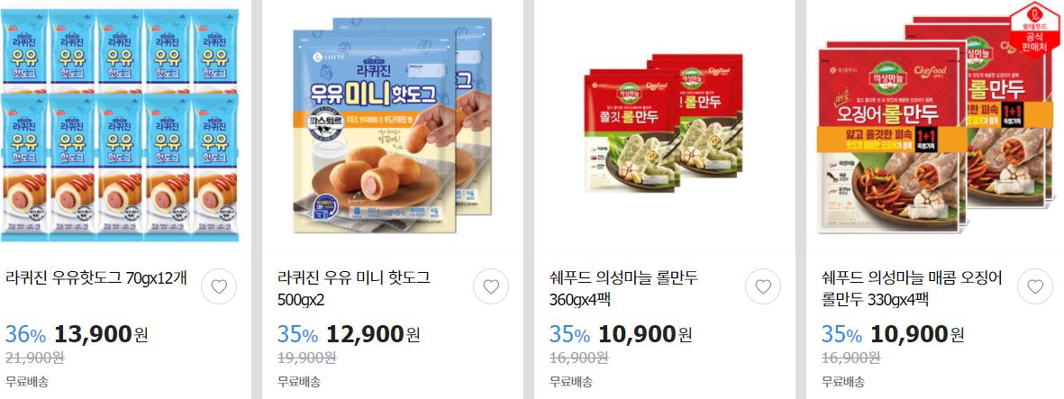 할인 품목 : 만두, 핫도그, 아이스크림 등