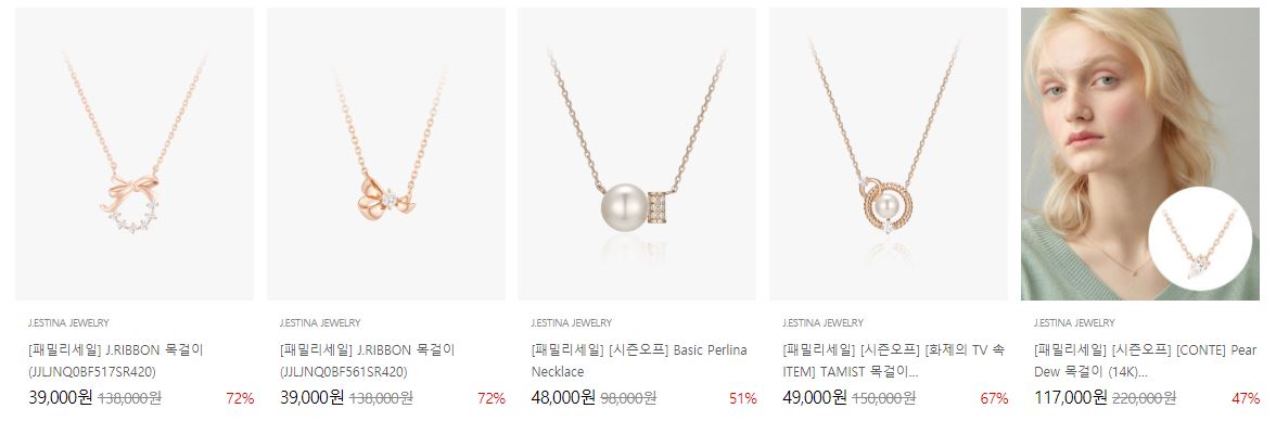 할인 품목 : 목걸이, 시계, 귀걸이 등