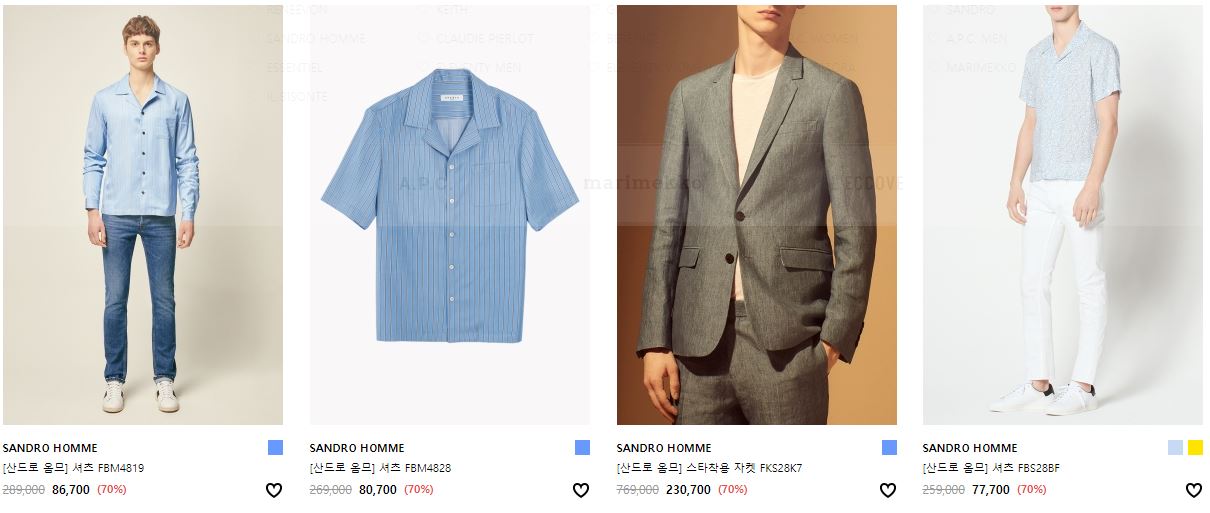 산드로옴므 다양한 제품을 할인 판매하네요.