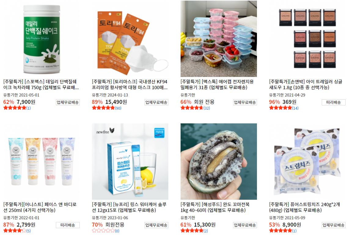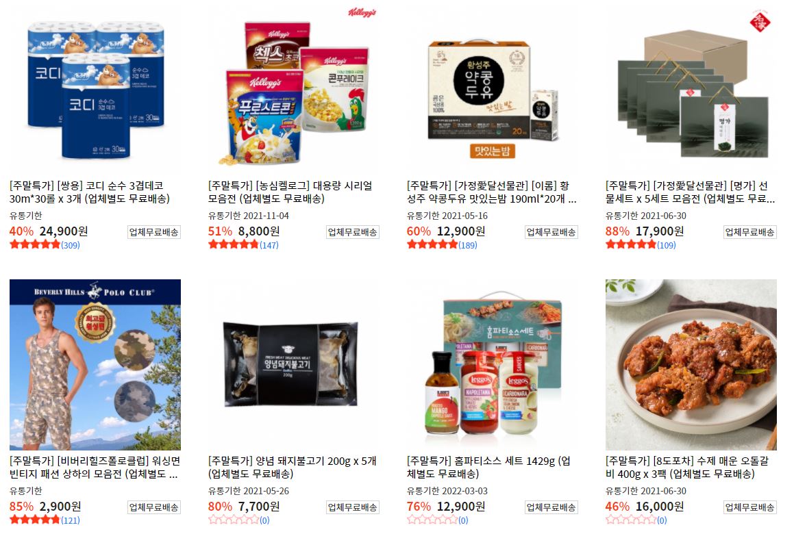 할인 품목 : 식품, 화장품, 의류 등