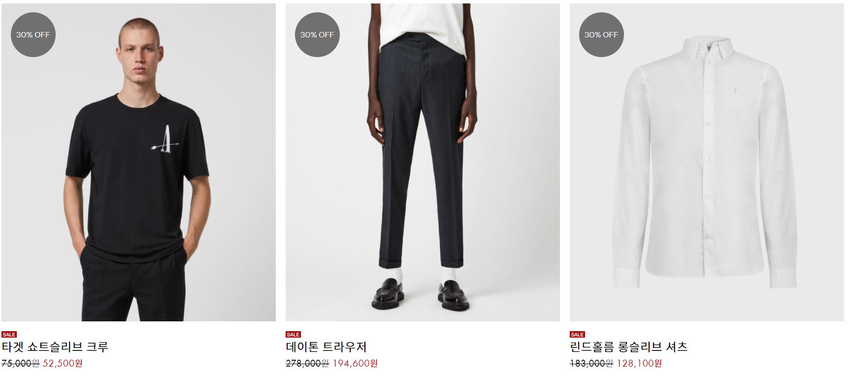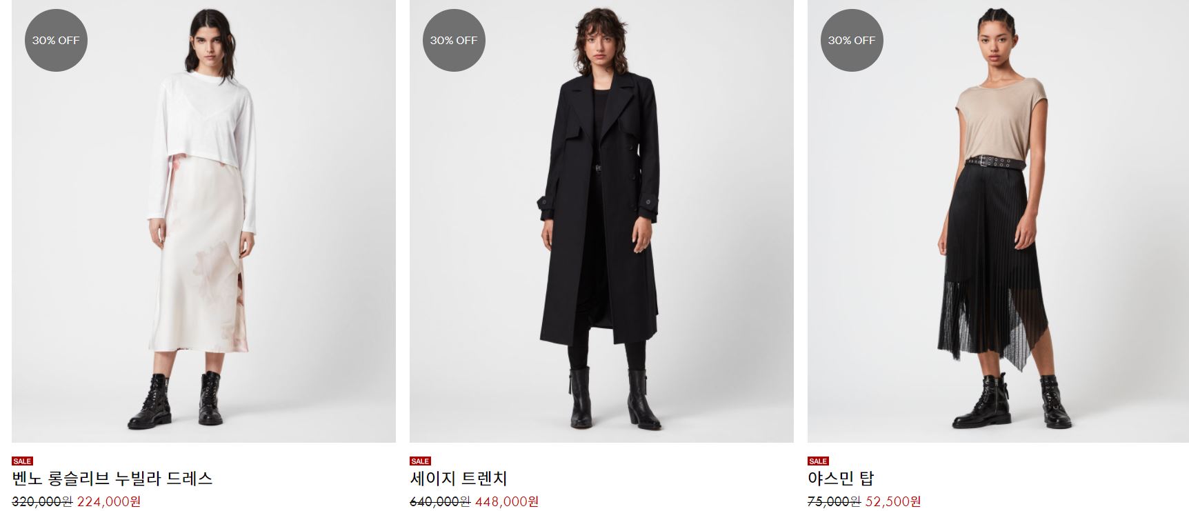 올세인츠 사이트에서 할인 이벤트를 진행하네요.
